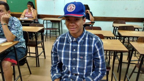 R: Minha tia que me forçou. Eu já tinha estudado aqui nesta escola, por três vezes, mas não levei nada a serio. Agora tó aqui para ficar.