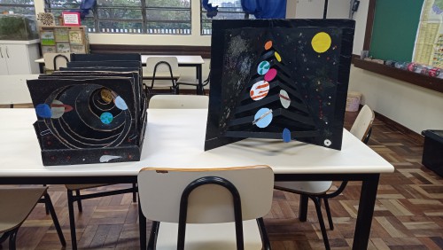 Eu gostei da nossa oficina por causa da exposição que fizemos no sábado letivo. Primeiro nós começamos a estudar o sistema solar e depois, o Big Ben. Também tipos de estrelas, como o sol, após estudamos sobre estrelas de Neutrôn e aprofundamos os estudos sobre o buraco negro. Nós assistimos bastante vídeos a respeito das galáxias e descobrimos que estamos localizados no superaglomerado de Laniakea, na galáxia Via Láctea, no Braço de Órion.