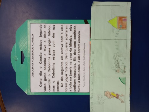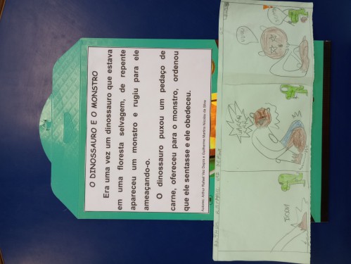 Depois dessa experiência, formamos duplas e escolhemos uma das duas tirinhas para explorar outro gênero textual, a narrativa.