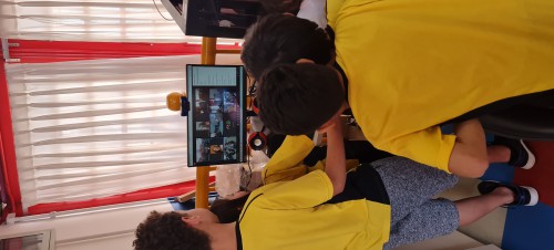 Depois, conhecemos a história do Monstro Rosa e fizemos uma atividade mão na massa. Cada estudante criou um super herói para proteger dos perigos da Internet. Foi uma atividade que nós gostamos muito de fazer.