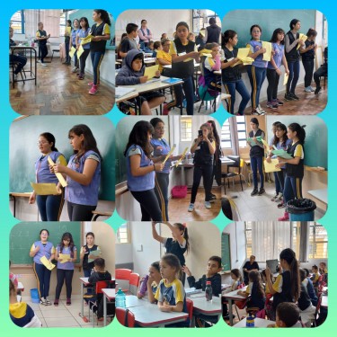 OS JORNALISTAS DO 5º ANO, FIZERAM A DISTRIBUIÇÃO DAS FICHAS DE INSCRIÇÃO,CONVERSARAM E ORIENTARAM OS ESTUDANTES SOBRE O REGULAMENTO DO CONCURSO.