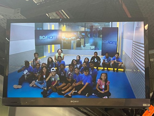 NOSSA AULA NOS LEVOU A SALAS SECRETAS ONDE OS JORNALISTAS SE PREPARAM PARA ENTREVISTAS. TIVEMOS QUE PASSAR EM SILÊNCIO POR ALGUMAS ÁREAS, POIS AS REPÓRTERES ESTAVAM SE ARRUMANDO. DESCOBRIMOS SALAS DE EDIÇÕES E PUBLICAÇÕES DE VÍDEOS, COM DIREITO A MÁQUINAS DE ALIMENTOS PARA OS LANCHINHOS. FOI UMA AULA DE CAMPO DIFERENTE DE TUDO QUE JÁ VIVEMOS, E ADORAMOS CADA MOMENTO DESSA EXPERIÊNCIA JORNALÍSTICA. QUEM SABE UM DIA, NÓS TAMBÉM CONTAREMOS AS NOTÍCIAS DIRETO DOS ESTÚDIOS DO GRPCOM!