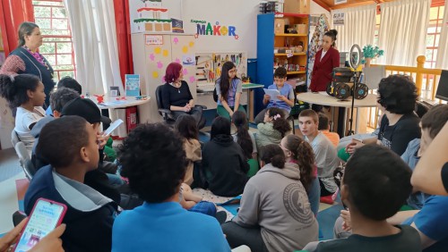 A autora deste livro, chamada Lúcia Tulchinski veio visitar nossa Escola Municipal CEI Heitor de Alencar Furtado e responder a algumas perguntas. Ela contou-nos sobre seu trabalho, como esse livro foi feito, quando foi escrito e lançado. Nos contou sobre sua trajetória como escritora, sobre como foi seu caminhar. Nos falou um pouco sobre sua vida, suas inspirações, seus descendentes, de onde veio,enfim, fizemos uma entrevista coletiva, um bate-papo na verdade, onde ela respondeu às dúvidas dos alunos, deu um autógrafo no livro de nossa biblioteca, assistiu à uma apresentação musical feita pelos alunos do Integral. Conheceu também o Heitor, o robô sonhador, que criamos de forma coletiva no espaço maker do Farol, deu abraços fortes e deixou muitos emocionados.