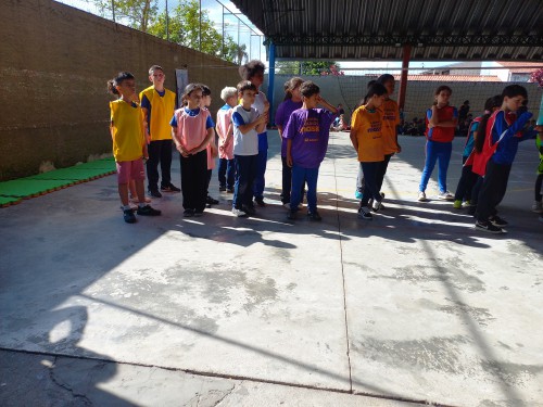 Eu e minhas colegas entrevistamos as crianças para saber para qual time elas estavam torcendo. Tinham muitos times com cores diferentes. Ao todo, eram 9 equipes disputando o primeiro lugar.