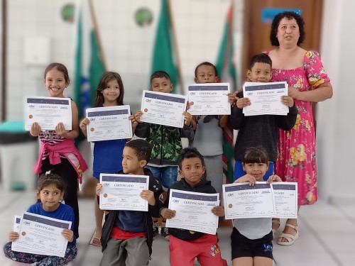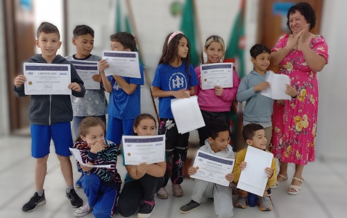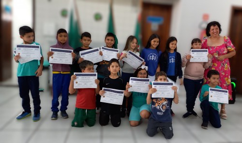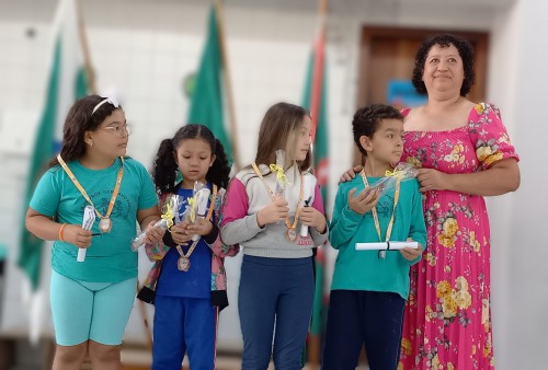 Manhã de entrega dos certificados e medalhas aos estudantes da UEI que realizaram as provas da OBA e OBAFOG