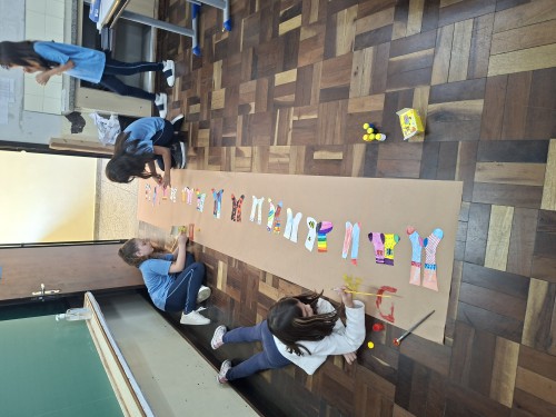 Na escola Municipal Dom Bosco o 5° ano Integral desenvolveu um trabalho sobre a Sindrome de Down e por isso no dia 20\03\2026 os estudantes poderão vir usando meias coloridas.Eles colocaram vários cartazes pela escola, inclusive um deles com a Tati, que é uma pessoa com a Síndrome e que Maurício de Sousa fez ela no corpo de um personagem da Turma da Mônica.Aqui na nossa escola temos uma colega chamada Diana e ela também tem Síndrome de Down ela estuda no 1° ano regular e já escreveu até um livro chamado ''A casa colorida''com a ajuda da professora Ana Maria lá da APAE.